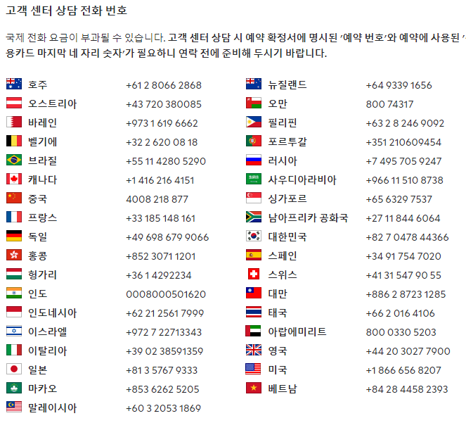 한국 이외의 해외 고객센터 상담전화번호까지 안내를 해주니 혹시라도 필요한 경우에 해당 국가 전화번호로 전화를 해주시면 됩니다. 또한 전화하실 때 빠른 처리를 위해 고객번호를 미리 준비해주시면 편리 합니다.