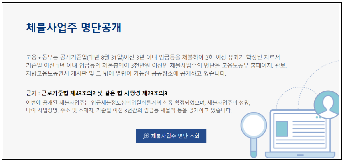 임금체불 사업주 명단 바로 확인