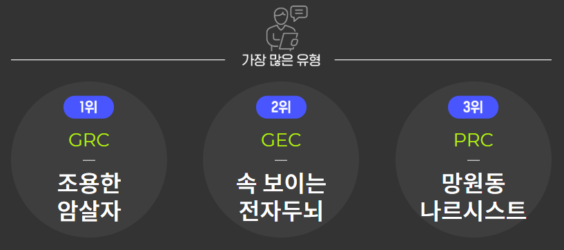 가장 많은 유형 1위부터 3위까지 결과입니다.