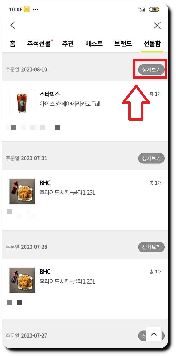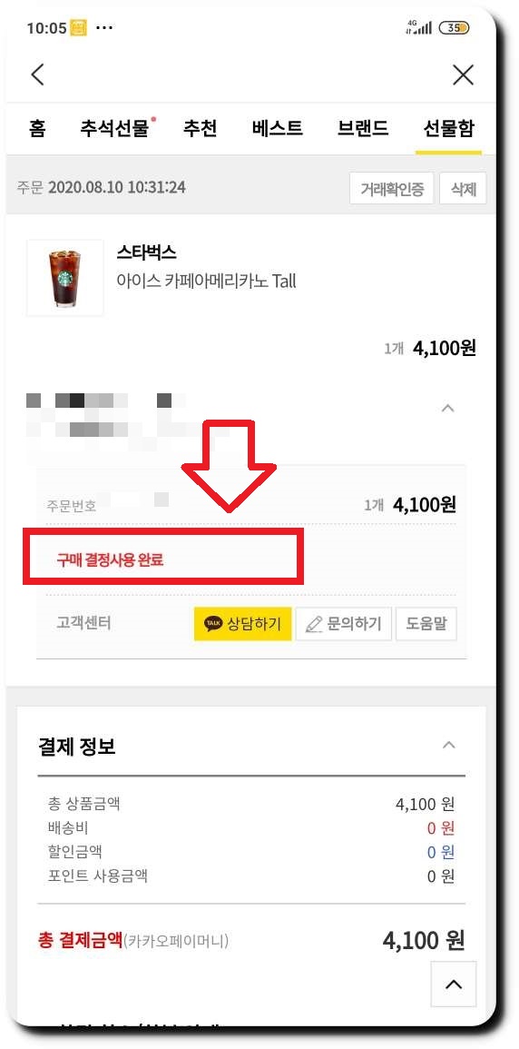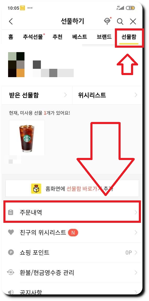 카카오톡 선물 하기 조회하기