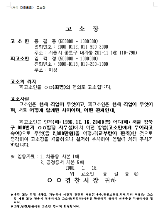 고소장 작성요령