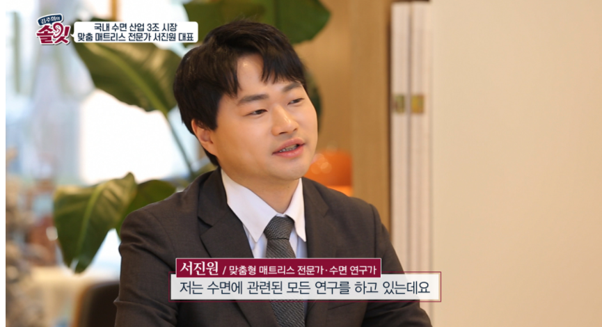 SBS CNBC 김주희의 솔깃이라는 프로그램에서 2020년 2월에 방송을 타며 인기를 끌게된 매트리스 회사가 있는데요. 바로 베스트슬립 맞춤 매트리스입니다. 김주희의 솔깃 방송에 따르면 한국인이 평균적으로 수면하는 시간은 약 8시간이 채 되지 않는다고 합니다. 이는 OECD 국가 중에서 평균에 못미치는 굉장히 낮은 기록이라고 하는데요. 수면도 부족한데다가 수면의 질도 좋지 않는다면 일상생활에 굉장히 무리가 갈것입니다. 하지만 요즘 많은 사람들이 수면에 대한 인식이 점차 바뀌어 가면서 잠을 제대로 편한하게 자는 것이 굉장히 중요하다는 것을 느끼고 있습니다. 이에, 베스트슬립 맞춤 매트리스의 대표 서진원은 서울대 경영학과를 졸업 후 대기업에서 뛰쳐나와 매트리스 개발에 뛰어들었다고 하는데요.