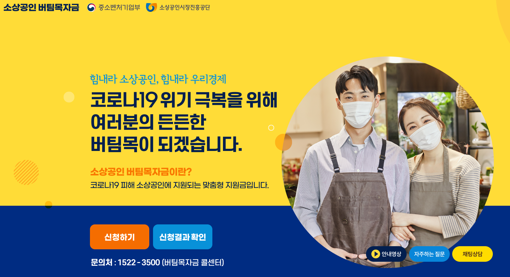 코로나 2차 소상공인 대출을 받기 위해서는 버팀목 자금 200만원 지급 확인서를 필수로 발급받으셔야합니다. 버팀목자금kr 홈페이지로 접속하시면 오른쪽 아래 신청결과 확인하기 버튼이 있습니다. 버튼을 눌러주세요.