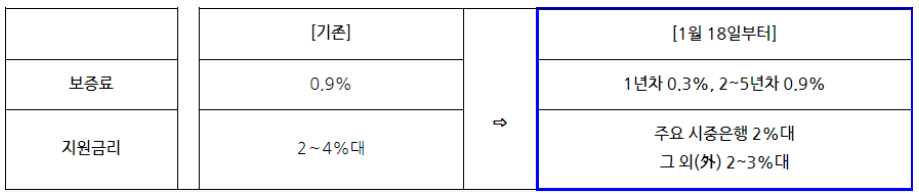 보증료는 0.9%에서 0.3%로 인하가 됩니다! 2년에서 5년차까지는 대신 0.9%가 적용되는 것입니다.