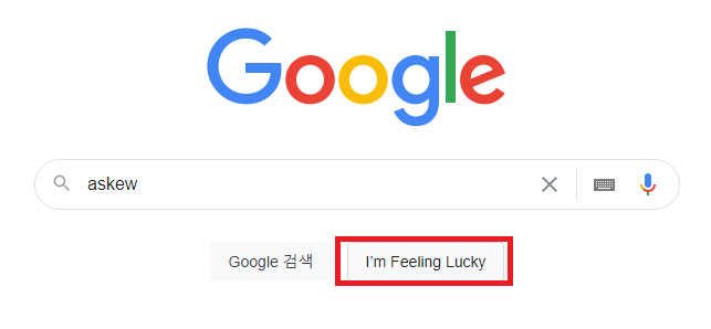 사실 I'm Feeling Lucky자체가 이런 기능을 가진것은 아닙니다. 해당 버튼은 구글에 어떤 키워드를 검색했을 때 가장 상단에 있는 사이트로 바로 연결해주는 기능입니다.