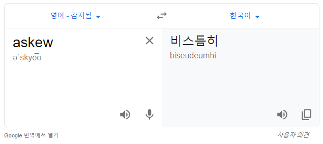 그냥 사전에 검색해도 쉽게 알 수 있는 단어입니다. 그렇다면 구글검색창에 askew를 검색해보면 어떤일이 벌어질까요? 당장 검색해봅시다.