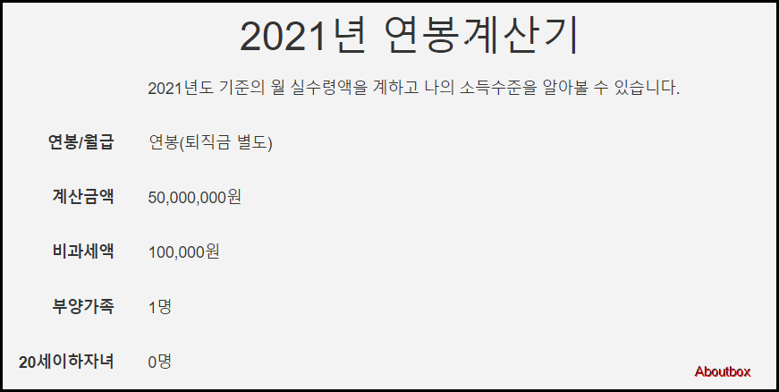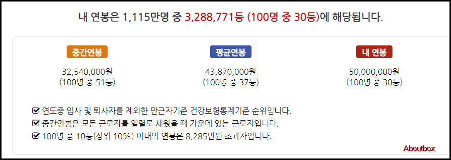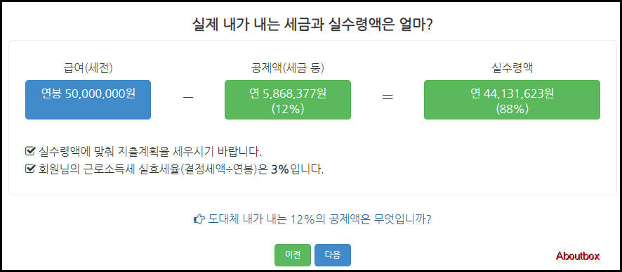 중간연봉/평균연봉/내연봉 순으로 나옵니다. 임의로 5천만원을 넣어보았습니다.