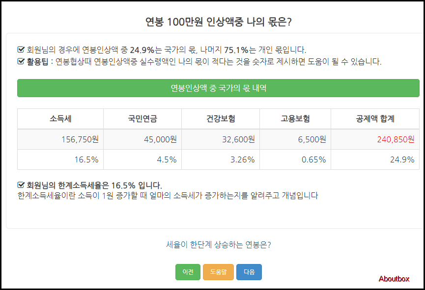 연봉 100만원 인상액 중 나의 몫이 얼마인지 확인이 가능합니다.
