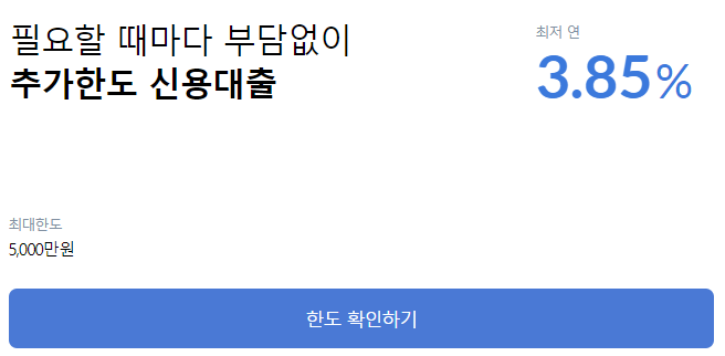 | 최대 5,000만원 | 최저 연 3.85% | 최대 3년 |