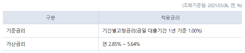 | 대출한도 | 대출금리 | 대출기간 |