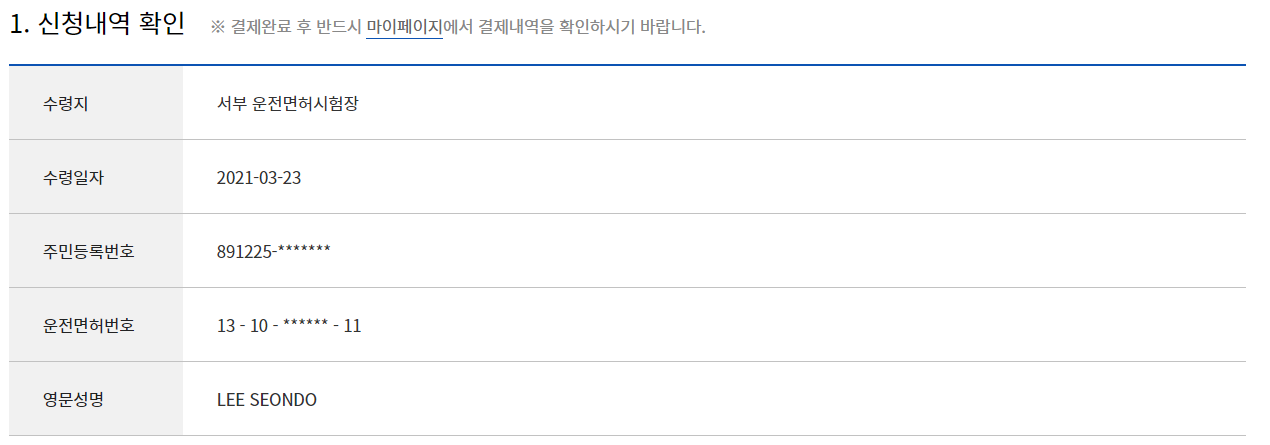 2. 면허정보를 확인합니다.