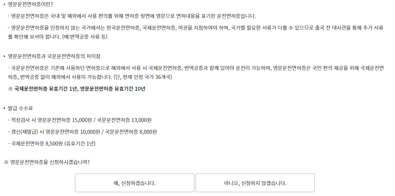 4. 영문 면허증을 신청할지 여부에 대해서 체크해줍니다. 뒷면에 영문면허증으로 발급이 됩니다.