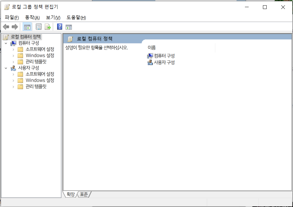 5. 로컬 그룹 정책 편집기 (gpedit.msc)가 정상적으로 실행되는 것을 확인할 수 있습니다.