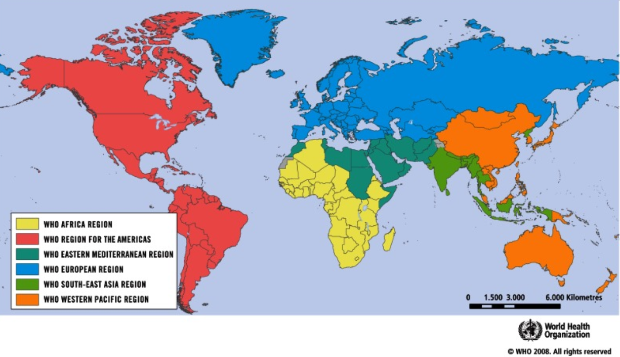 사람과 사람간의 바이러스 퍼지는 전염병이 동일 대륙(WHO지역이 기준(사진참조))에서 두 개 나라(국가) 이상에서 발생한 상태이며 Epidemic 즉 감염병이 유행한다고 하는 단계입니다. 반면 대다수의 국가들은 아직 감염의 영향이 없는 단계이며, 5단계란 판데믹이 될 수 있는 강력한 신호로서 많은 준비를 해야할 시기입니다.