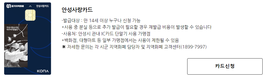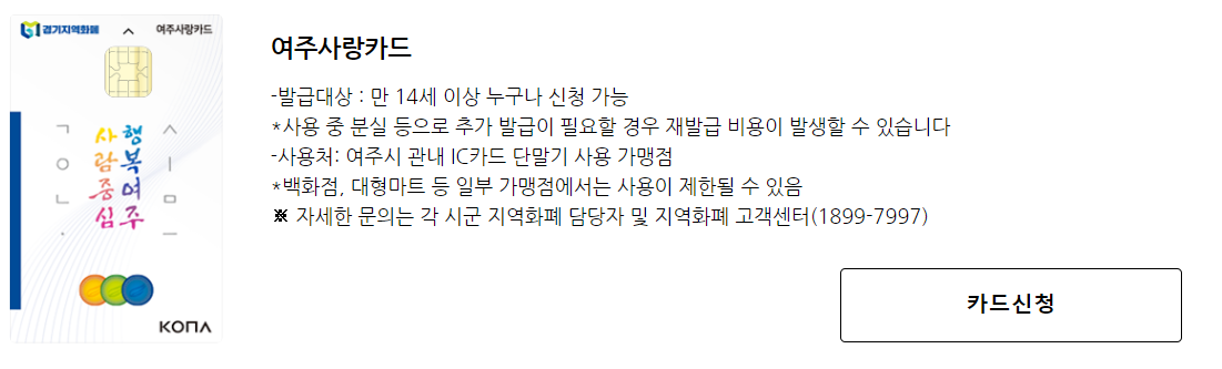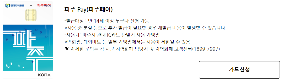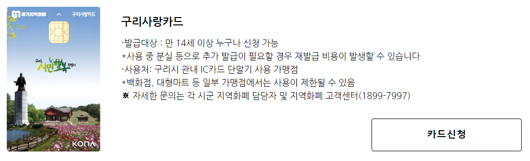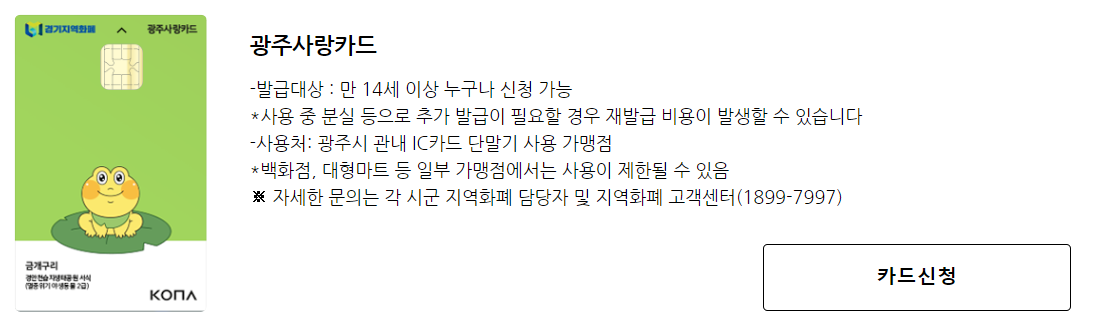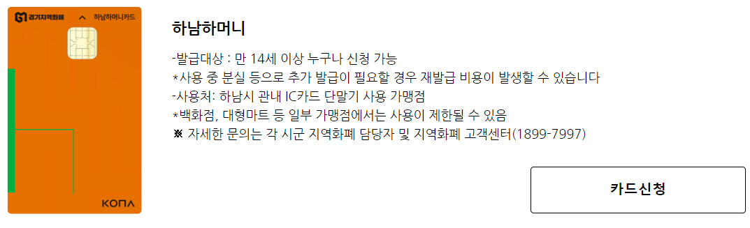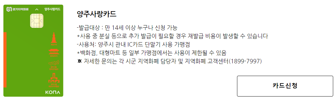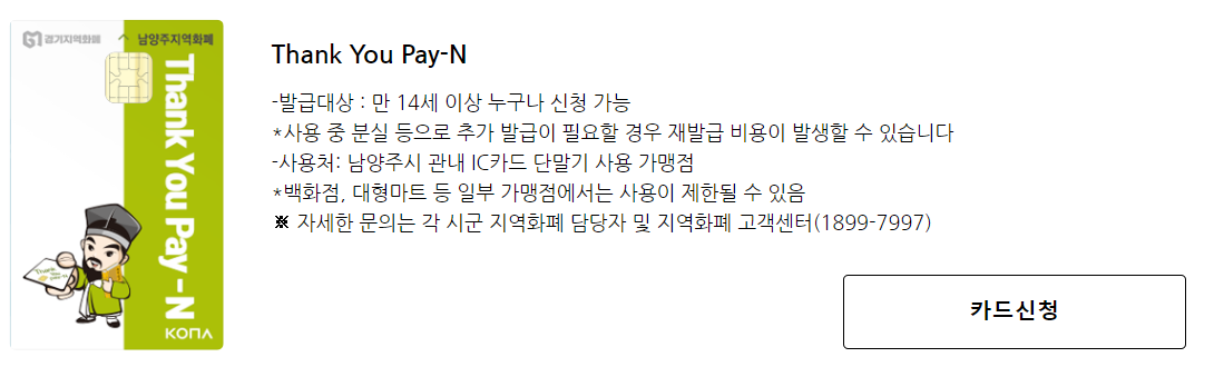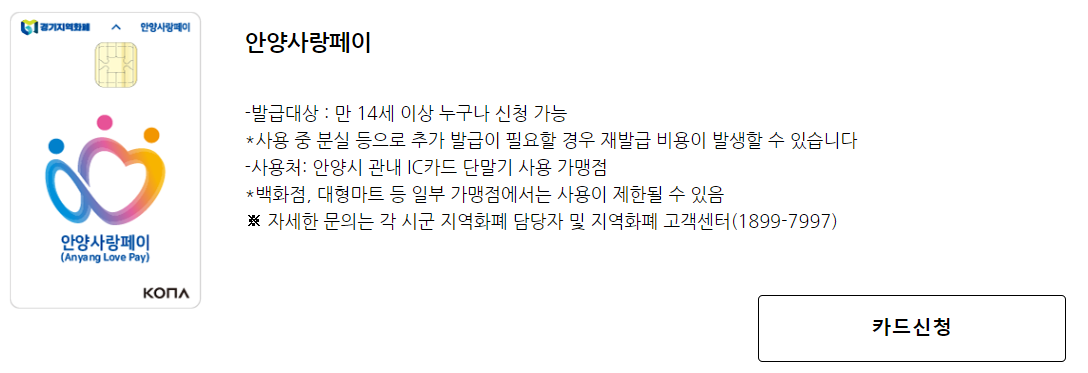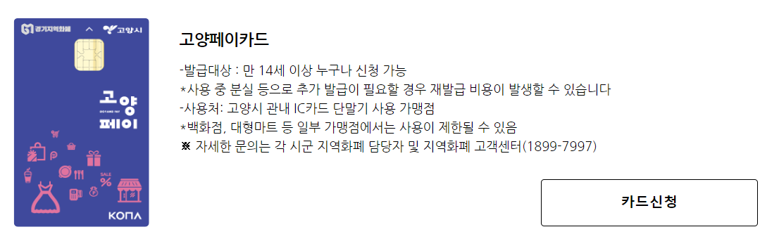 경기지역화폐 카드를 신청하고 이용내역을 관리할 수 있는 사이트