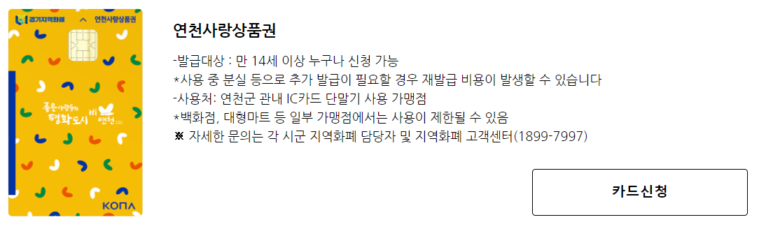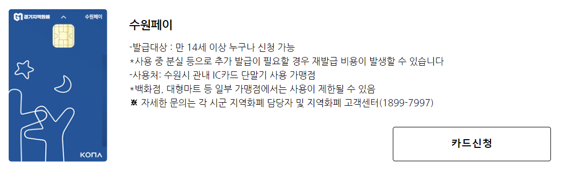 KONA 카드라고 써있는데 '코나아이(주)'라는 기업이 경기지역화폐의 운영대행사라고 합니다.