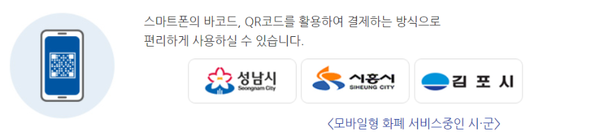 스마트폰/핸드폰에서 바코드 혹은 QR CODE를 사용해서 결제하는 방식으로 쓸 수 있습니다. 시흥시와 성남시는 지류 상품권을 사용하는데 위에서 설명드렸다시피 모바일로도 사용가능하고 김포시는 카드와 모바일 둘다 사용가능하네요.