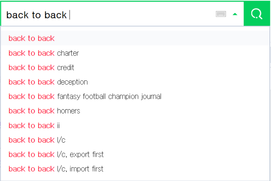 아래처럼 Back to back을 검색하면 연관검색으로 무역관련용어들이 더 많이 나오기 때문에, 다음 포스팅에서는 위와 관련된 무역용어들에 대해서 포스팅 하도록 하겠습니다.