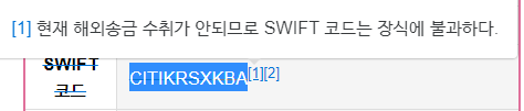 씨티은행 스위프트 코드 swift code (CITIKRSXWLS)