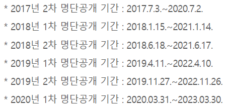 명단공개기간은 년도별로 1차2차로 나뉘어져 약 3년간의 명단공개기간동안 게시가 되게 된다고 합니다.