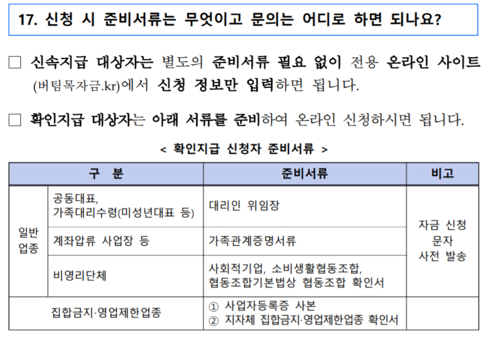 이 중에서 신속지급 대상자는 별도의 준비서류가 필요없이 버팀목자금 홈페이지에서 신청이 가능합니다. 접속 후, 신청정보를 입력해주세요.